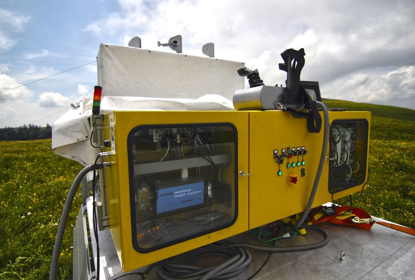 To help determine the position of the kite, the ground unit was fitted with sensors to measure the angle of the main line of the kite. Wind speed and direction, and lines forces were also measured. The kite itself was equipped with an inertial measurement unit consisting of three accelerometers, three magnetometers, three gyroscopes, a barometer, and a GPS. The data from these sensors was transmitted to the ground unit via a radio link.