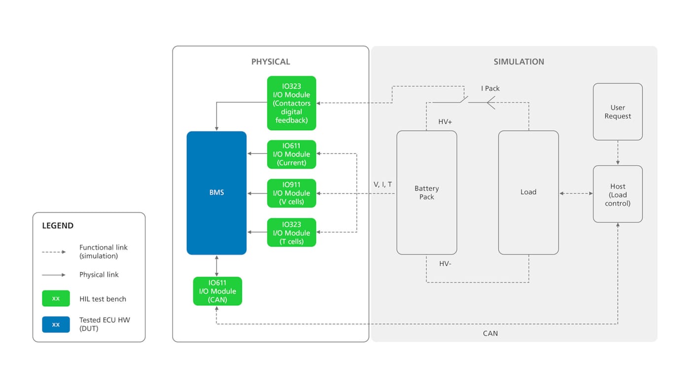Without a HIL bench, one alternative to performing closed-loop tests is to run them at the software level only (SIL) and to assess algorithm performance on actual battery systems. However, this process has limited coverage, is time-consuming, prone to errors, and does not reduce the complexities of developing, testing, and upgrading state-of-the-art algorithms for BMS. Another drawback is a lack of preliminary testing possibilities, which means bugs can often only be found in later development stages.