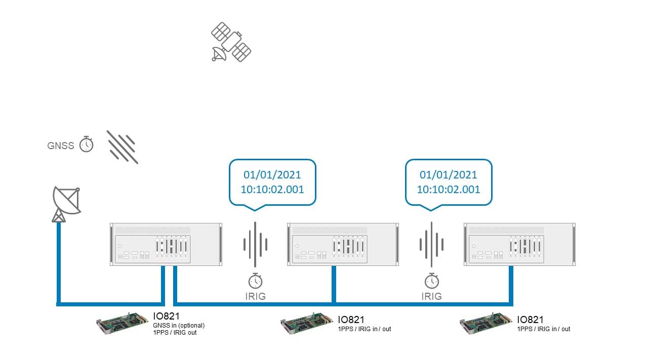 In time-based synchronization, the internal clock of each node is synchronized to a reference clock. This allows executing and correlating synchronized measurements with an absolute sense of time (date and time). Synchronization over long distances is possible by using globally available master clocks like the time signal provided by Global Navigation Satellite Systems (GNSS).